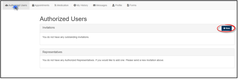 1. If you would like to authorize someone else to access your account (such as a parent or a legal guardian,) click on Authorized Users at the top, then click ‘New’ to send them an invitation to register.
