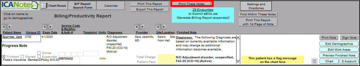 Keep in mind that this will print everything but the patient's demographics page. To print demographics, open the demographics page of the patient chart and click the button.