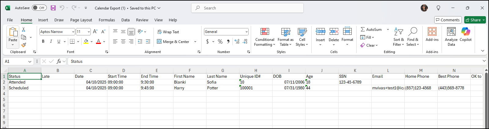 7. When the report opens, it will be shown in Excel as selected. It can be printed from Excel.