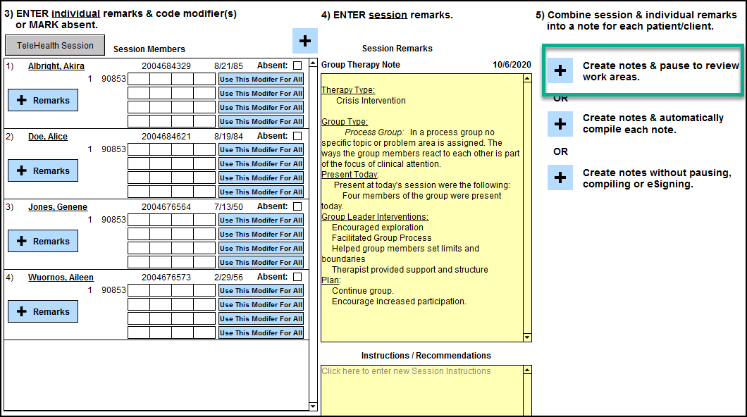 5. When you return to each Group Therapy Progress Note, click 'Compile & eSign' in the lower-right.