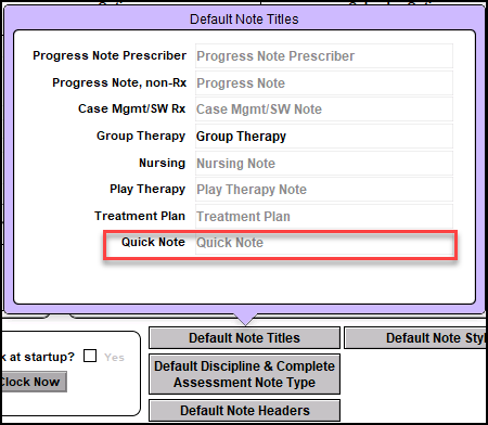 When a Quick Note is compiled, its default note title will be Quick Note. Users can change the default note title for the Quick Note - as well as several other note types - in the Options tab of Individual Settings and Directories.