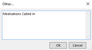 - Choose Other under Subtitle and when the popup window populates type in "Medications Called In"