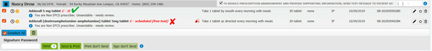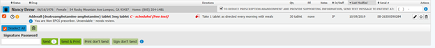 You can also distinguish a free text controlled substance medication when viewing a pending prescription if you see the red text “(free text)” next to the sig, in place of indicating the actual schedule classification of the medication (ie. SCHEDULE II or SCHEDULE IV or C-II)