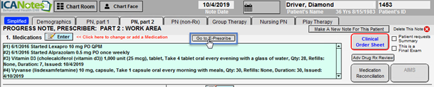 From a Prescriber work area (Progress Note or Complete Assessment):