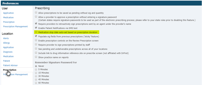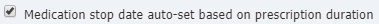 Click to enable (checked)/disable (unchecked) the checkbox: Medication stop auto-set based on prescription duration
