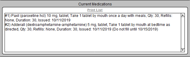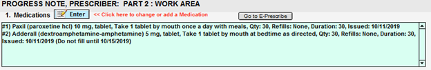 When downloading e-prescribe data from DrFirst into a note, the Do Not Fill until date will be included in the description if prescribed. After the note is compiled the same Do Not Fill information will be visible within the note text and on the Chart Face. This applies to medications prescribed via iPrescribe as well.