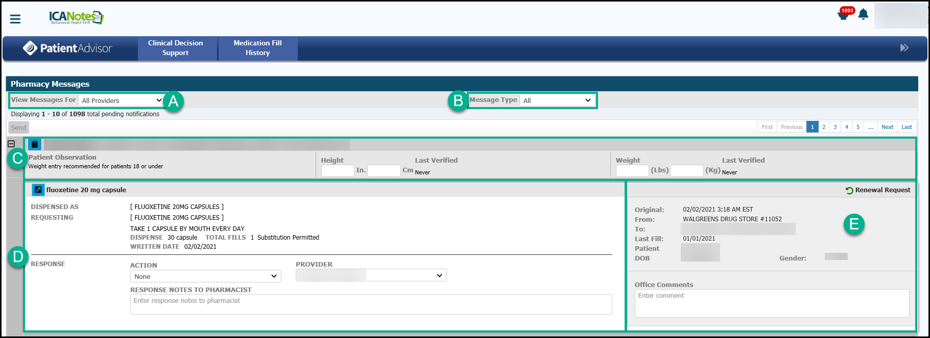 E. Other information related to the Pharmacy Message, including a timestamp of the Pharmacy Message, source pharmacy, provider, patient information, etc.