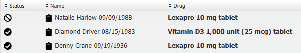 You can also click on the line item (such as on the patient’s name) to open the Review Prescription popover to see the status under Transmission History