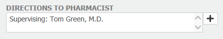 Note: To have a supervising physician added to your account so that it appears on all prescriptions (without having to add custom Directions to Pharmacist), please call Support at (443) 569-8778.