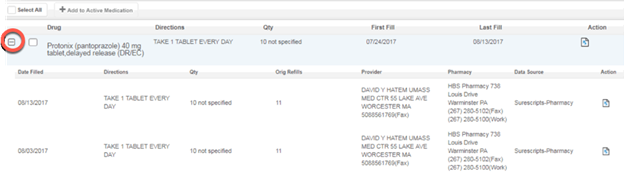 Medications can be added by checking the box to the left of the medication's listing and clicking on the Add to Active Medications button. This will copy all of the medication's information to the patient's active medication list.
