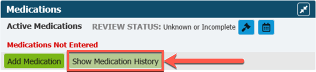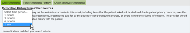 If a medication on the patient's medication history is already added as an Active Medication, it will display as gray in color and with an italicized font. Hovering over the medication will indicate to users that it is already marked as active.