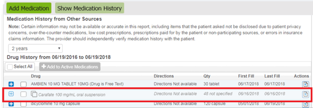 Rcopia 4 has the ability to obtain medication history for up to one year on patients from SureScripts. SureScripts receives medication information from two sources, Pharmacy Fill data and Payer Claims information. To pull a patient’s medication history, complete the following steps: