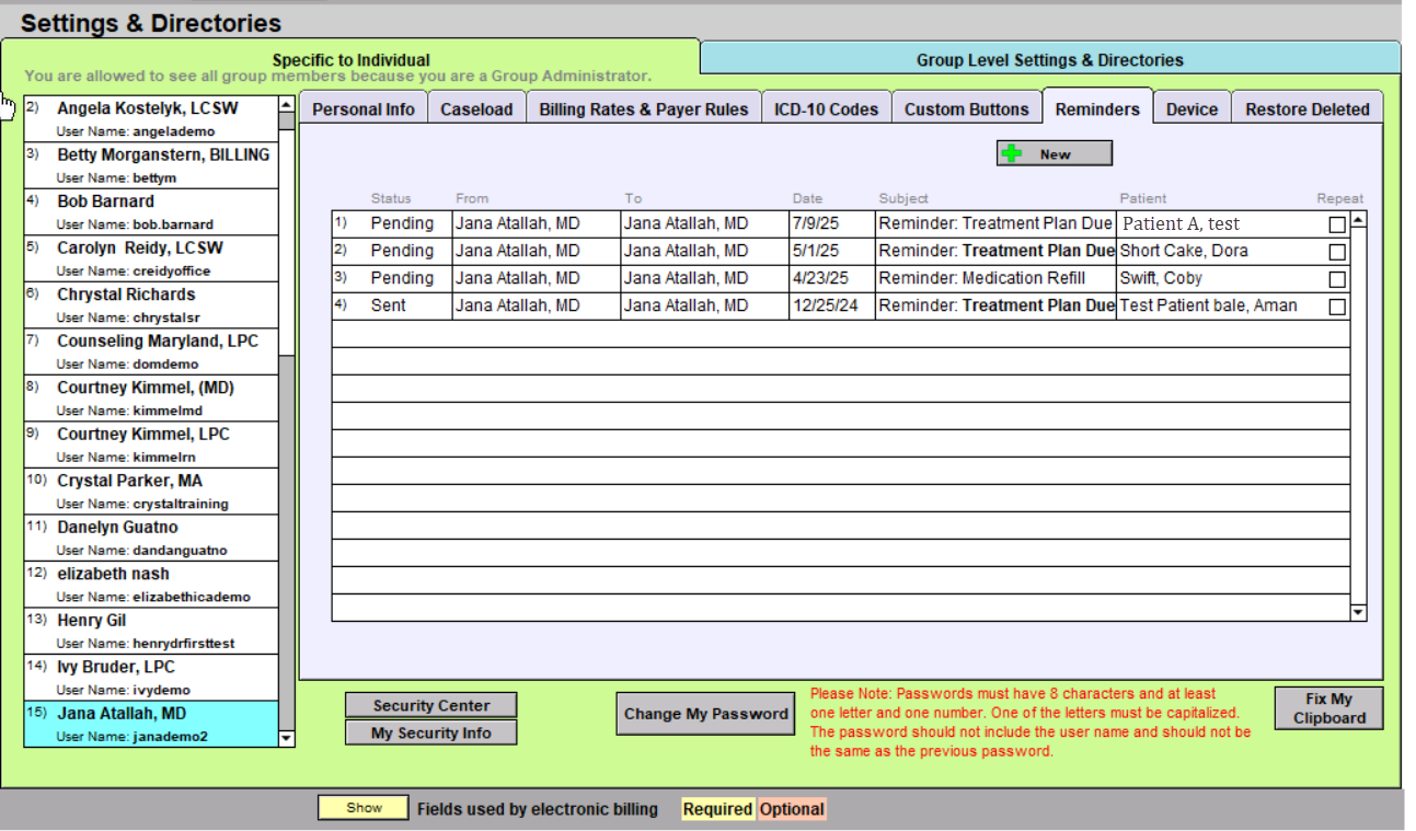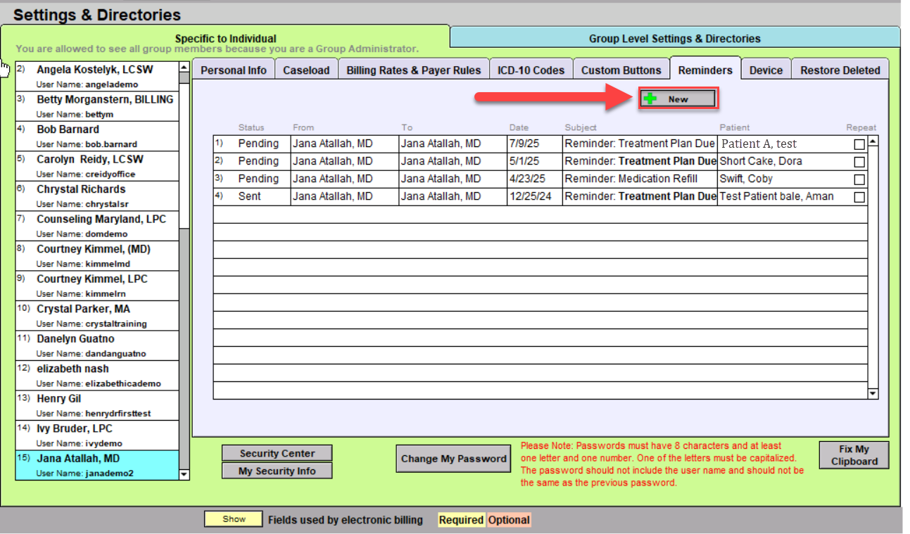 The Reminders Tab in Settings + Directories is a tool that can be used to set reminders for yourself or others in your group.