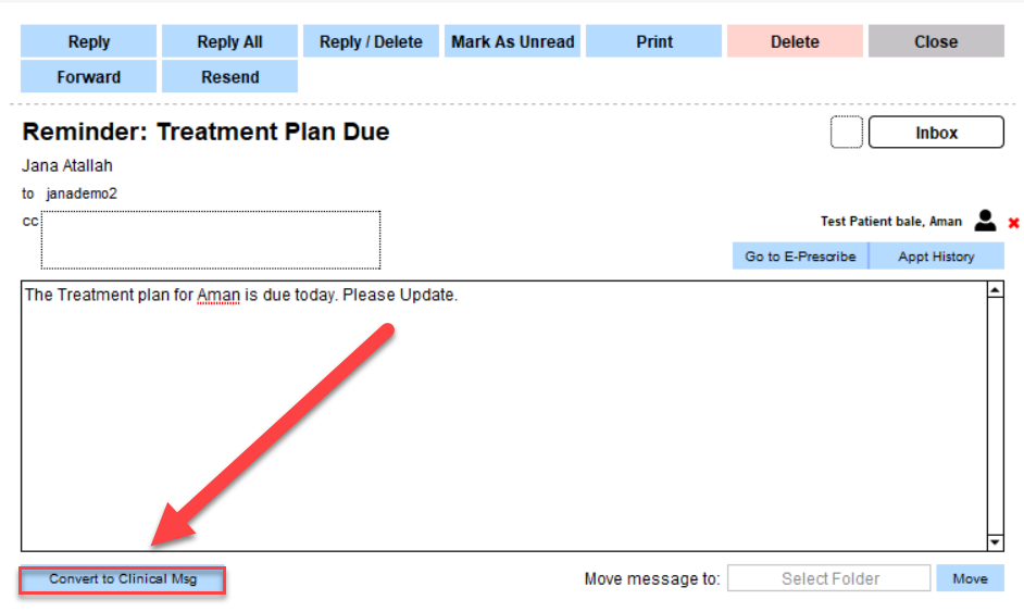 4. (Optional) From here, the recipient is going to make a clinical message to document the Reminder was completed.