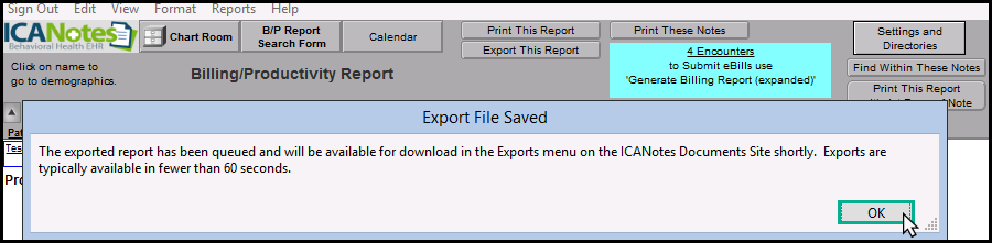 Once your have selected the Note Types to include in your Report, Click on the Productivity Report (Columns) button to populate your results.