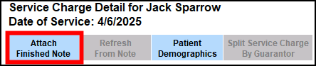 If a note for the service has been created but has not yet been added to Patient Accounts, within the Edit Service window you can click to Attach Finished Note.