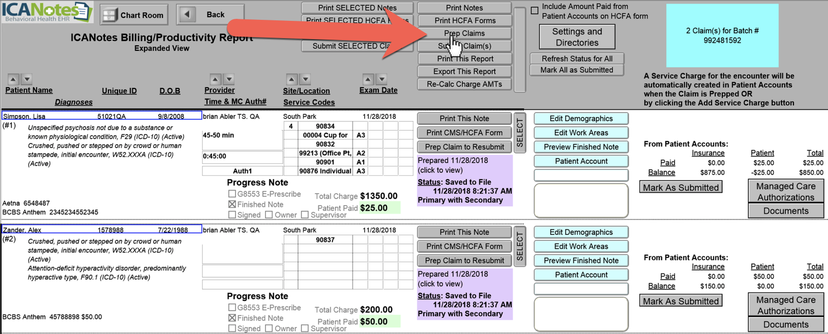 4. Use the Prep Claims button at the top of the report to prepare all claims in the batch.