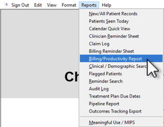 1. Navigate to the Billing/Productivity Report from the Reports menu in ICANotes.
