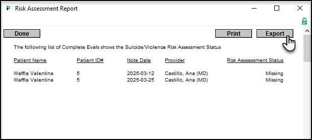 The Risk Assessment Report (which is located in Billing/Productivity Report Search Form as shown below) will now export to the Upload Site like all other exported documents from ICANotes.