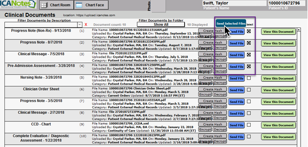 In the Documents tab, use the checkboxes to select two or more documents. Once all desired selections are made, click to Send Selected Files.