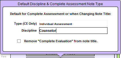 Click into each field to set new custom titles for Type (CE Only) and Discipline). You can also click to Remove "Complete Evaluation" from note title.