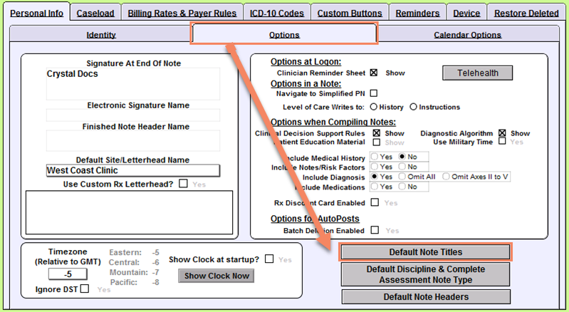 In Specific to Individual Settings & Directories, navigate into the Options tab and click on Default note Titles.