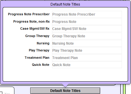 To save your changes, simply click outside of the Default Note Titles pop-up and it will close, saving your changes with it. Newly created/compiled notes will now contain the custom note title. Previously compiled notes of this type will not update to reflect the new title change.