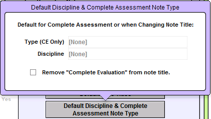 In the Options tab, click to view Default Discipline & Complete Assessment Note Type.