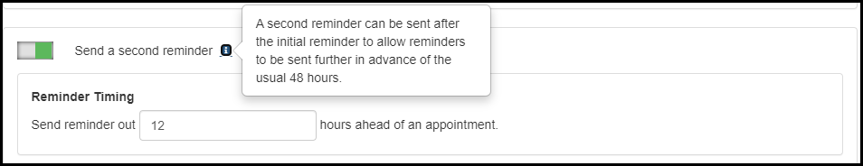 b. You can allow the patient to confirm or cancel their appointment by responding to the reminder. The 'i' icon has additional information on this function.