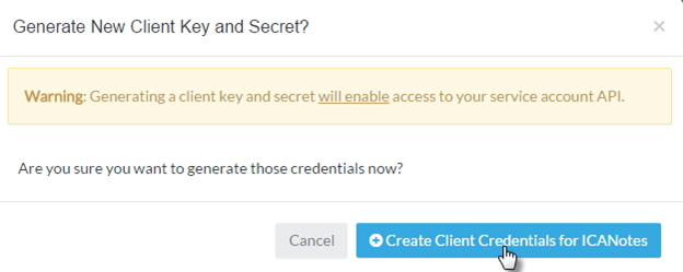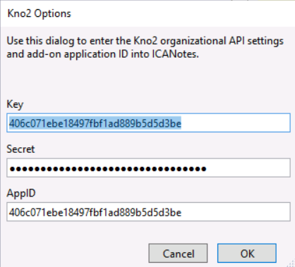 5. It is very important to copy the key, secret and AppID from the text program (from above) and paste into the fields in ICANotes, as this will ensure that every value is correct. Be sure that there are no spaces at the beginning or end of the entered text.