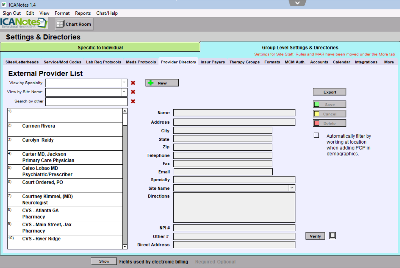 Kno2 addresses are like email addresses and also serve as Direct addresses, but are used only in healthcare, and are used for sending and receiving informaiton to and from your organization to external organizations. Unlike a typical email address, a Kno2 address can be assigned at different levels.