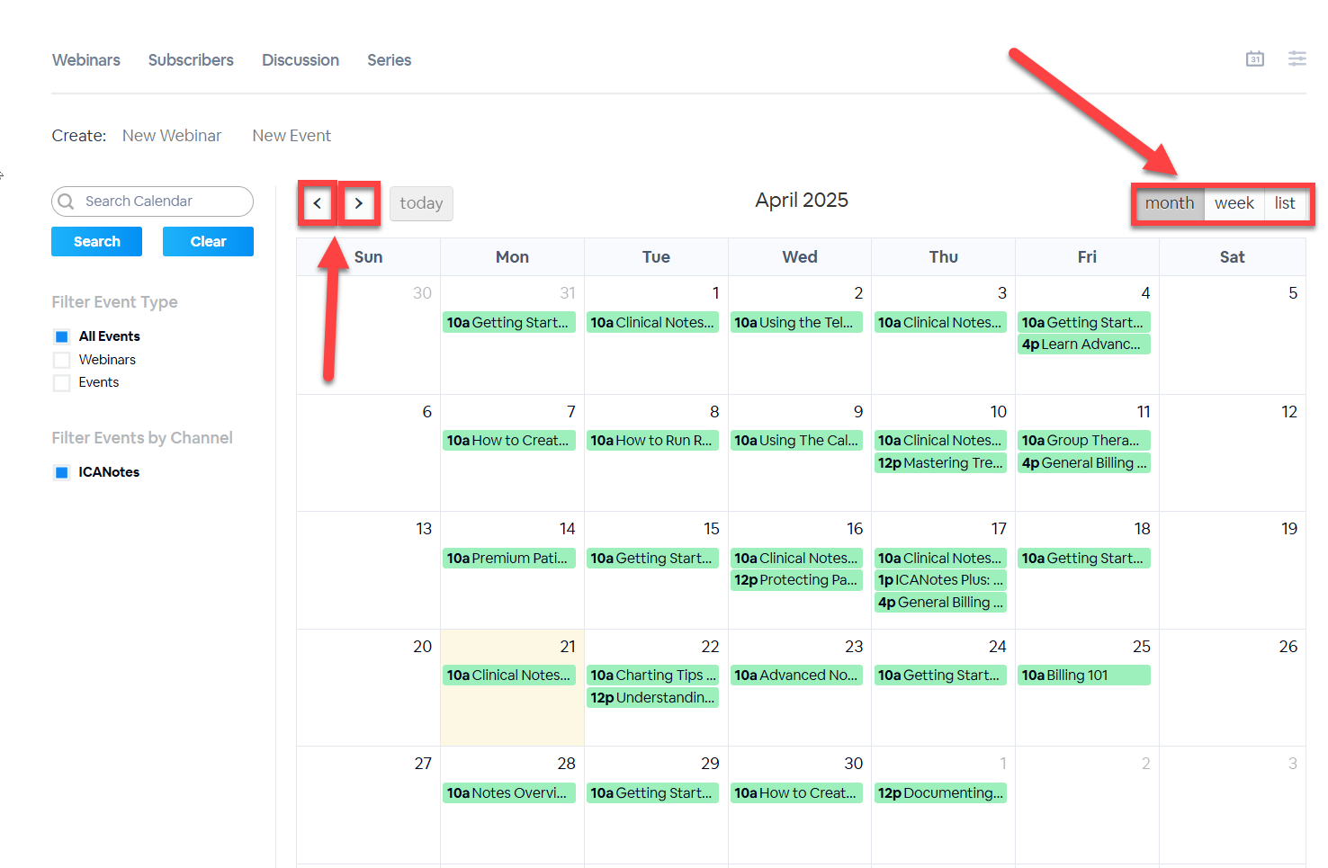 Click "All ICANotes Webinar" at the bottom left to return back to the Event page.