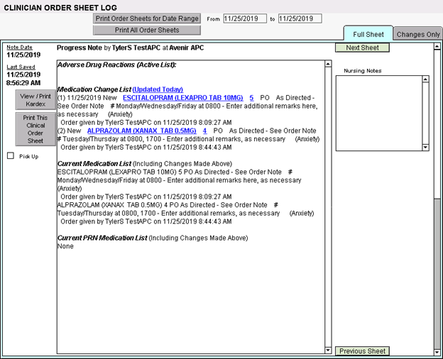 As well as the Clinical Order Sheet