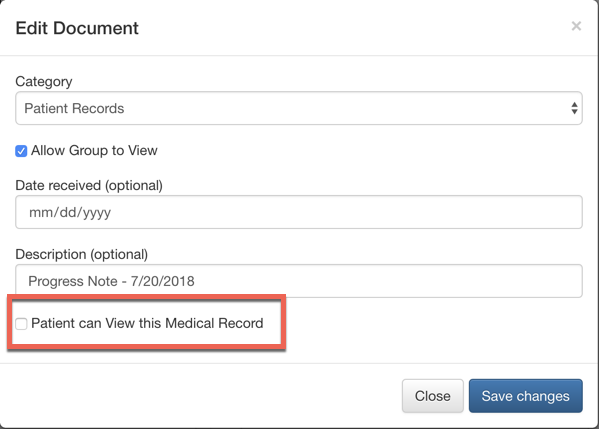 5. In the popover window, select "Patient can View this Medical Record" checkbox.
