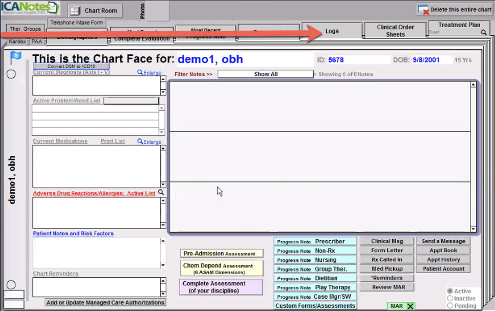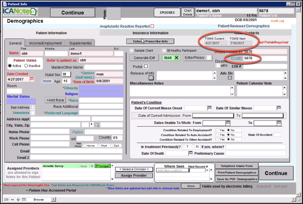 2. Fill out the Demographics. Be sure to fill out the CLUID, TOMS Current, and TOMS Next dates.