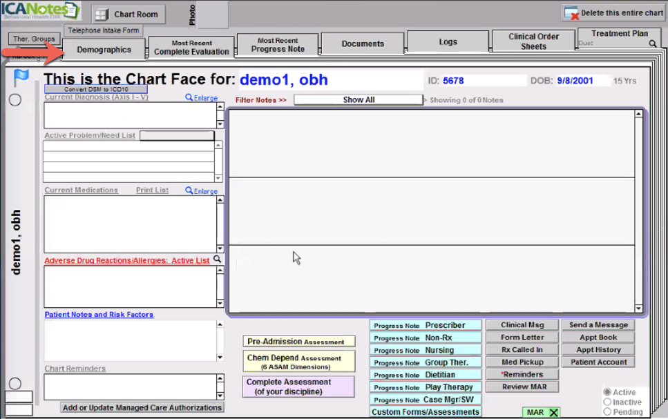 Note: You can always make changes to the Demographics as needed by clicking the
