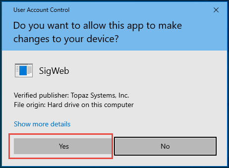 ✨ Note: Our installer includes preconfigured launch parameters and uses ICANotes' signed certificates to simplify the setup for supported models. If your not using our recommended model you will need to install the Sigweb software directly from Topaz and follow their instructions https://topazsystems.com/sdks/sigweb.html