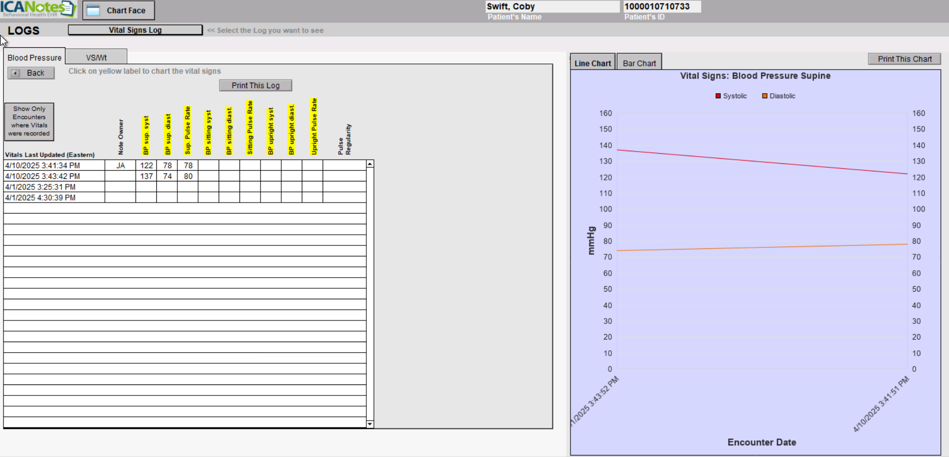 If you've been tracking Vital Signs using the Vital Signs button in PN Part 1, you can bring up a visual log of this data over time using the Vital Signs Log.