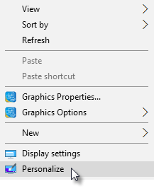 1. Right click on your desktop (not over an icon) and select Personalize from the dropdown menu.