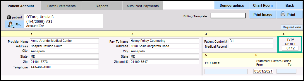 UB04 billing (also known as 837i) requires steps to set up in both the patient chart and in the Settings & Directories. This document will outline the setup and submission of UB04 claims. Please be aware that to follow this workflow, your practice does need to have UB04 billing functionality enabled. Please reach out to us for additional details on how to have UB04 billing enabled. Training is required before UB04 billing can be enabled for your practice.