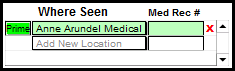 Patient Account Charges for Episode (green box): This is where the service charges for this episode are listed and can be edited.
