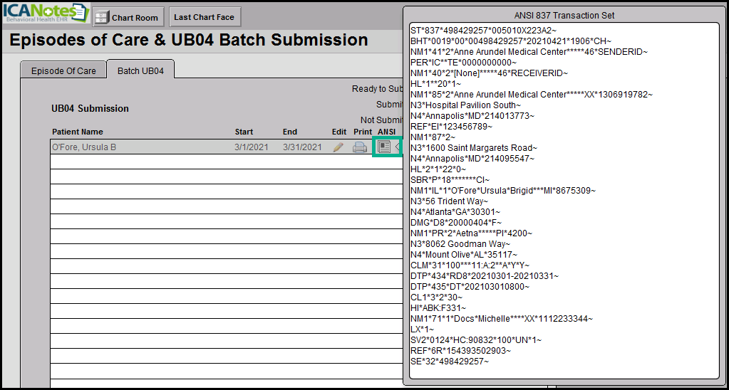 15. Click the 'Back' button in the upper right of the window to return to the Episodes of Care & UB04 Batch Submission window.