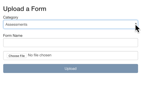 Under Upload a Form on the right side of the screen, choose the category that you would like to use from the dropdown menu.