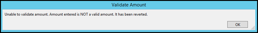 A negative amount can ONLY be entered into the Paid field. Entering a negative amount in another field, such as Adjustment or Credit, will result in an error.
