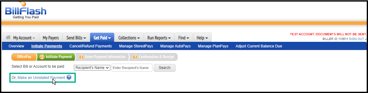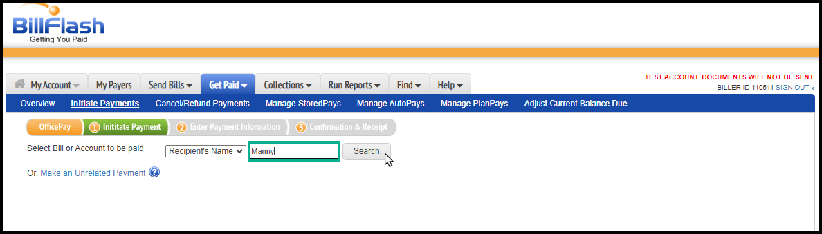 2. Click on the “Get Paid” tab and “initiate payments”.