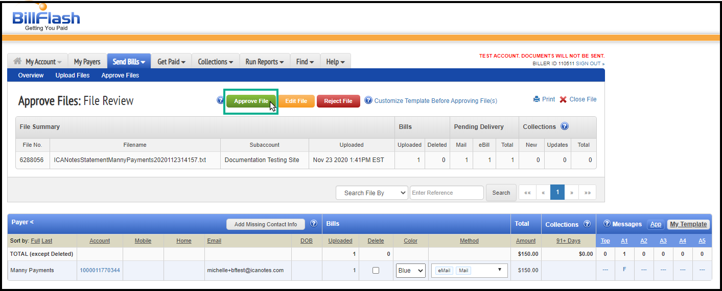 10. You can then Click the 'Approve File' button to send it out (shown above).