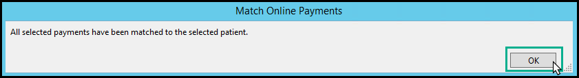 6. A popup window will show indicating that the payments have been matched. Click 'OK' to close.