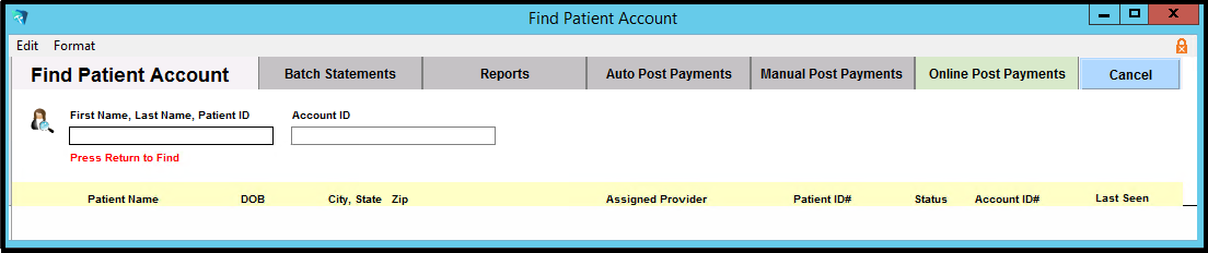 Please note that after payments have been posted, the phrase “patient has no unposted payments” will appear in red. All this means is that there are no more payments remaining to be posted for this patient. It is not an error and indicates you may move on to searching for another payment.