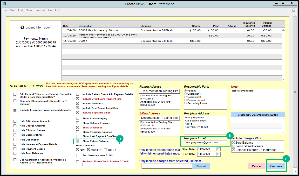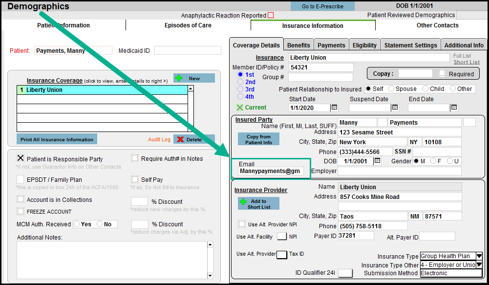 NOTE: Please be sure patients have an email set up in the 'Coverage Details' sub-tab of the Insurance Information tab in demographics, otherwise they won’t be able to get their BillFlash statement.