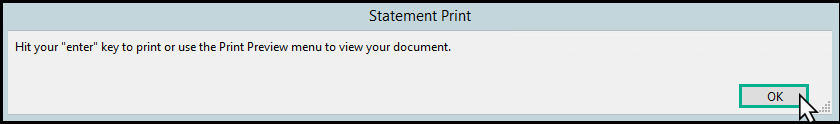 5. You will see a popup window alerting you to hit your enter the key to preview the statement. Just click through and cancel printing (unless you want a copy of the statement) and the statement will be sent to BillFlash.